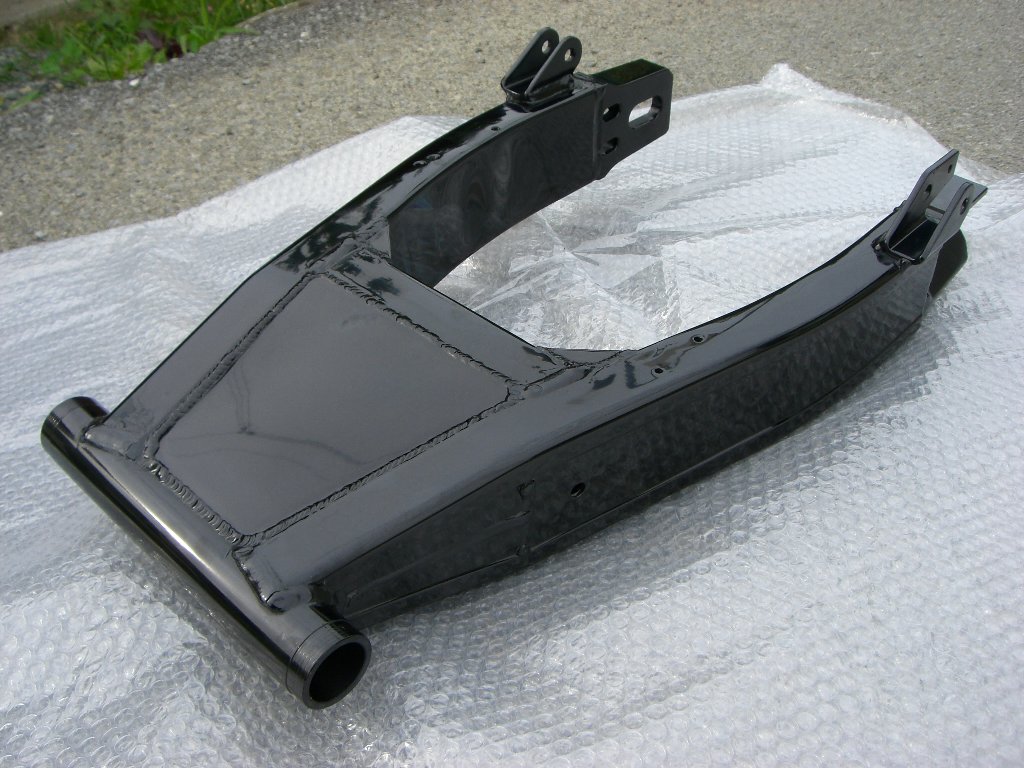 画像は純正スイングアーム加工品をバフ研磨後アルマイトした物です、この光沢感良いでしょ!